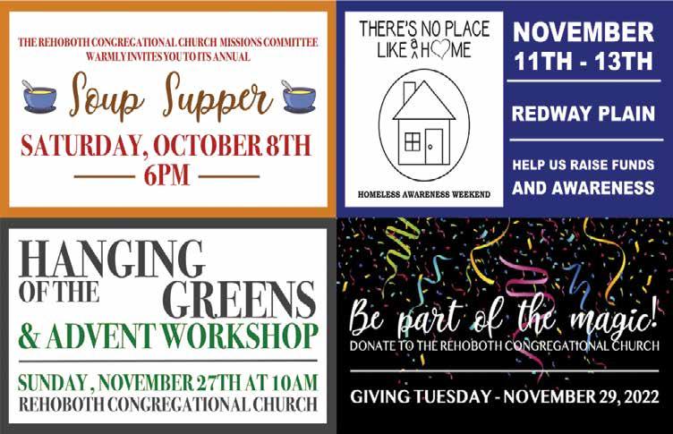 Hello All ~ I hope you are enjoying the beau tiful Fall weather in Rehoboth! Speaking of the Fall, I would like to remind all town residents that Town Offices will be closed on Monday, October 10th for Columbus Day/Indigenous Peoples’ Day. Also, on Tuesday, November 1st , quarterly real estate taxes are due. Early voting for the upcoming State Election – Gubernatorial Elec tion will begin on October 22nd and run through and including November 4th. Schedule of dates and hours appears below. Final reminder, as the Board of Selectmen voted on September 26th, there will be a Rehoboth Special Town Meeting on Tuesday, October 25th, which will be held at 7:00 PM at the Francis Farm-COA building “Francis Hall”; this date replaces the November 1st Special Town Meeting date that is listed on your 2022 Census calendar.