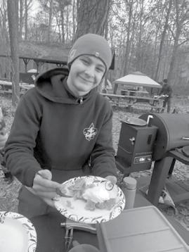 Troop 1 and Troop 9’s November campout was a Campsgiving event at Camp Aquapaug. Scouts utilized their camping and cooking skills to serve a tasty meal of turkey and all the fixings including mashed potatoes, stuffing, and cornbread.