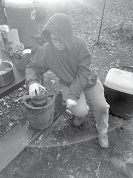 Scouts challenged their outdoor baking skills with dutch oven baked apple pie and monkey bread as well as hand cranked ice cream.