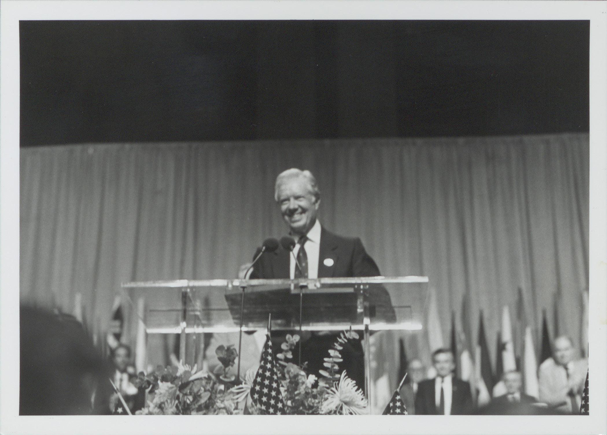 Former President Jimmy Carter speaks July 4, 1985, at the Baptist World Congress in Los Angeles. Photo courtesy of the Virginia Baptist Historical Society.