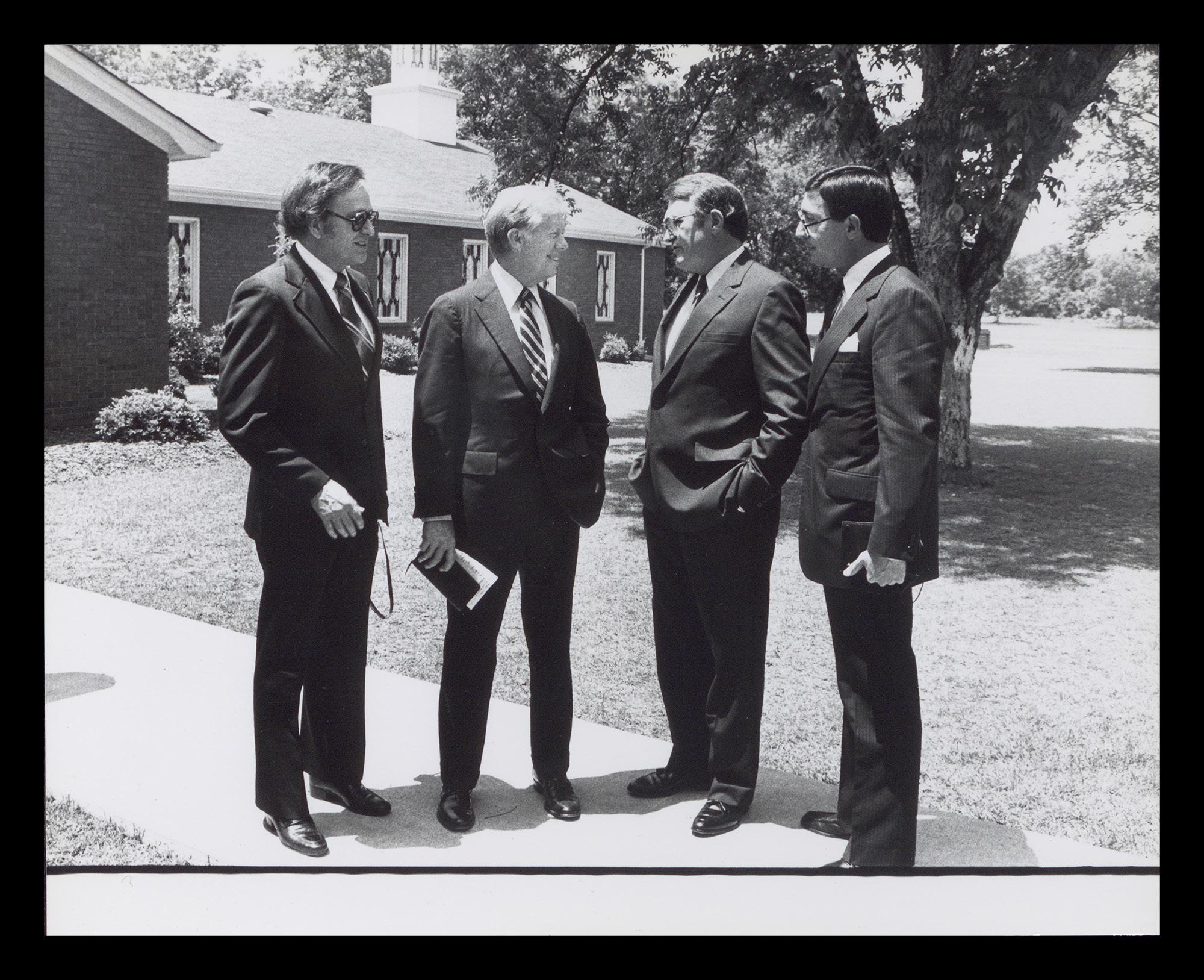 In this 1981 photo taken in Plains, Ga., the Rev. Dr. Stan Hastey (far right) is pictured with (left to right) Al Shackleford, editor of the Baptist & Reflector; former President Jimmy Carter; and Bob Maddox, former presidential liaison to the religious community. This photo by Joe Thompson ran in the July-August 1981 edition of Report from the Capital