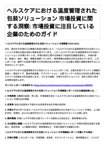 ヘルスケアにおける温度管理された包装ソリューション 市場概要 2024-2031: