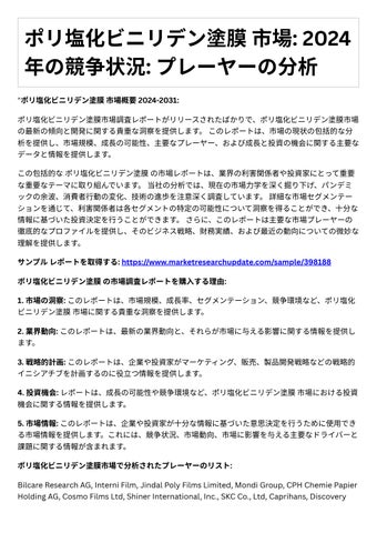完全なレポートを⼊⼿ @ https://www.marketresearchupdate.com/industrygrowth/polyvinylidene-chloride-coated-film-market-statistices-398188 結論として、市場調査レポ トは、市場規模、成⻑率、セグメンテ ション、競合状況など、特定の 市場の包括的な分析を提供します。
