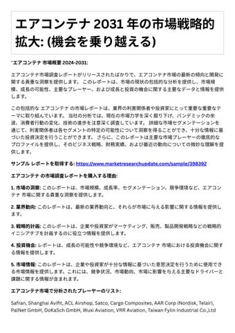 エアコンテナ市場調査レポ トがリリ スされたばかりで、エアコンテナ市場の最新の傾向と開発に 関する貴重な洞察を提供します。このレポートは、市場の現状の包括的な分析を提供し、市場規 模、成⻑の可能性、主要なプレ ヤ 、および成⻑と投資の機会に関する主要なデータと情報を提供 します。