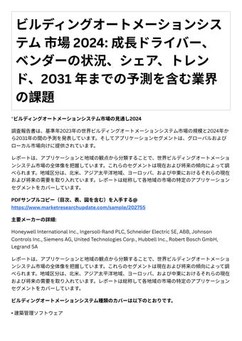 新たな主要セグメントと地域 主要マ ケットプレ ヤ による主要事業戦略とその主要⼿法 調査レポートは、グローバルおよび地域レベルでのビルディングオートメーションシステム市場 の規模、シェア、傾向、および成⻑分析を網羅しています。