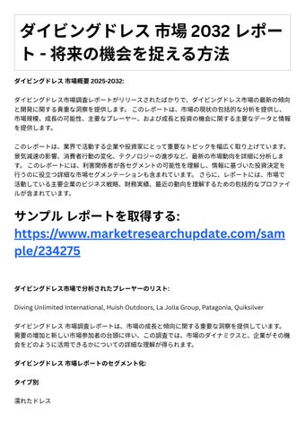 4. 投資機会: レポートは、成⻑の可能性や競争環境など、ダイビングドレス市場における投資機会に 関する情報を提供します。