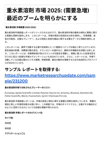 "重⽔素溶剤市場概要 2025-2032: