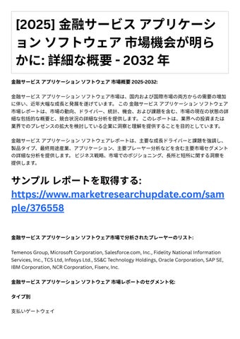 4. 投資機会: レポ トは、成⻑の可能性や競争環境など、⾦融サ ビスアプリケ ションソフトウ ェア市場における投資機会に関する情報を提供します。