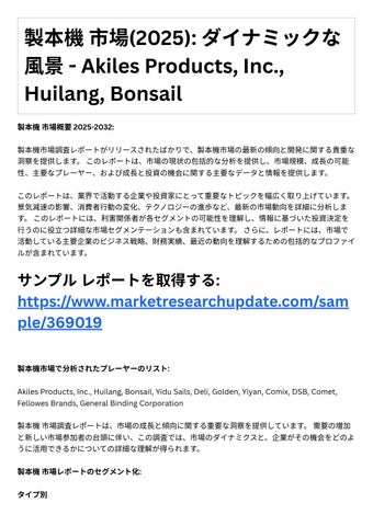 4. 投資機会: レポートは、成⻑の可能性や競争環境など、製本機市場における投資機会に関する情報 を提供します。
