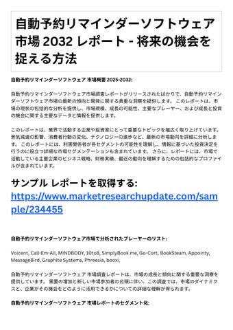 4. 投資機会: レポートは、成⻑の可能性や競争環境など、⾃動予約リマインダーソフトウェア市場に おける投資機会に関する情報を提供します。