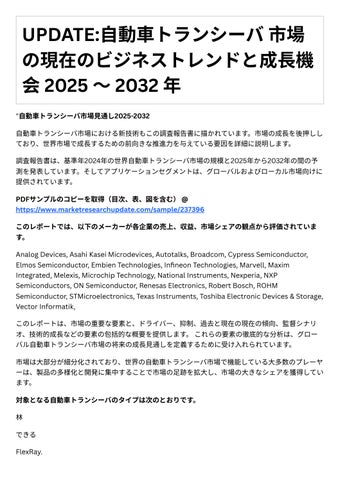 ⾃動⾞トランシーバ市場⾒通し2025-2032
