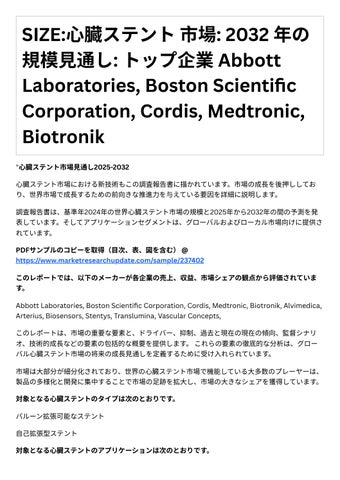 調査報告書は、基準年2024年の世界⼼臓ステント市場の規模と2025年から2032年の間の予測を発 表しています。そしてアプリケ ションセグメントは、グロ バルおよびローカル市場向けに提供さ れています。