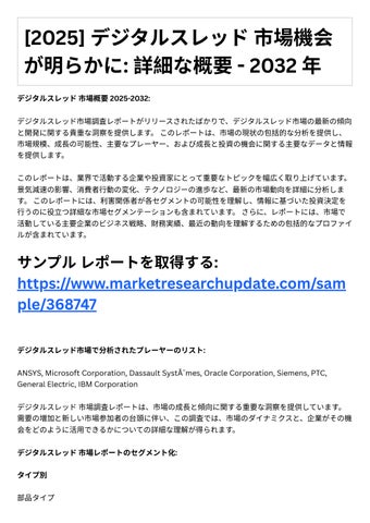 4. 投資機会: レポートは、成⻑の可能性や競争環境など、デジタルスレッド市場における投資機会に 関する情報を提供します。