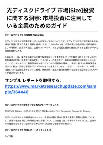 1. 市場の洞察: このレポ トは、市場規模、成⻑率、セグメンテ ション、競争環境など、光ディス クドライブ市場に関する貴重な洞察を提供します。