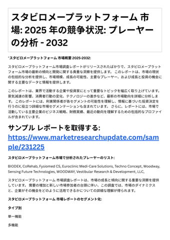 4. 投資機会: レポ トは、成⻑の可能性や競争環境など、スタビロメ プラットフォ ム市場におけ る投資機会に関する情報を提供します。