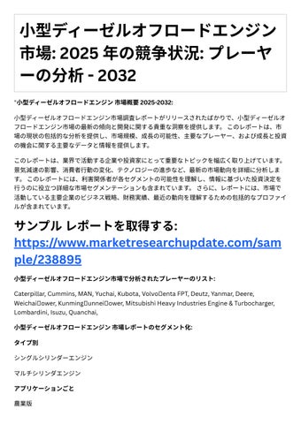⼩型ディーゼルオフロードエンジン市場概要 2025-2032: