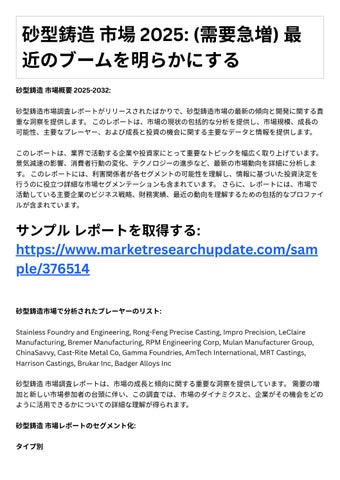 砂型鋳造市場 2025: (需要急増) 最
