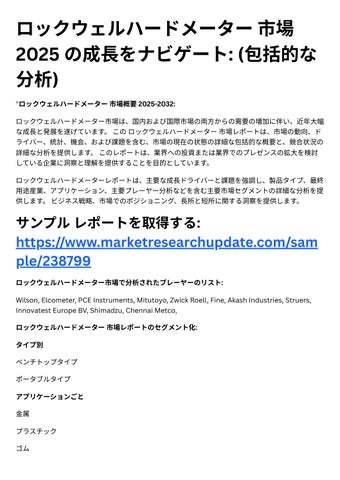 完全なレポートの説明、⽬次、図表、図表などを ⼊⼿する @ https://www.marketresearchupdate.com/indu stry-growth/rockwell-hardmeter-market2022-238799