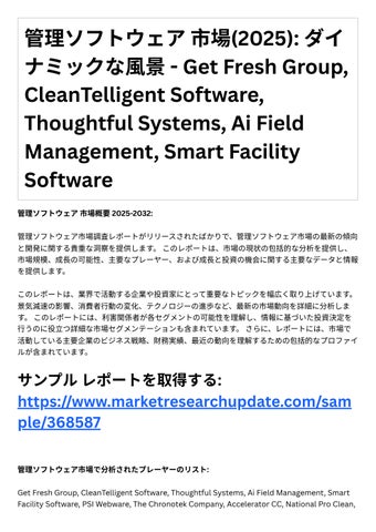 4. 投資機会: レポートは、成⻑の可能性や競争環境など、管理ソフトウェア市場における投資機会に 関する情報を提供します。