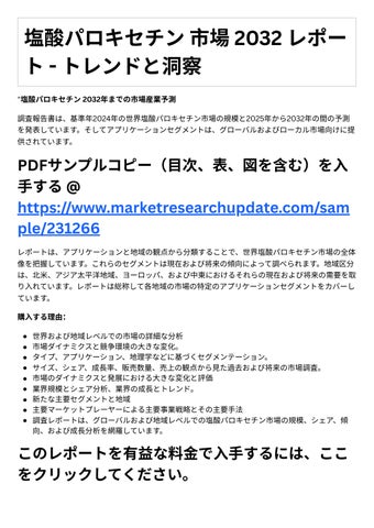 PDFサンプルコピー(⽬次、表、図を含む)を⼊ ⼿する @ https://www.marketresearchupdate.com/sam ple/231266