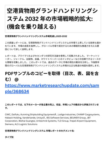 この調査レポ トには、空港貨物⽤グランドハンドリングシステムの市場で上昇している技術も描か れています。市場の成⻑を後押しし、グロ バル市場で成功するための積極的な推進⼒を与える要 因について詳しく説明します。