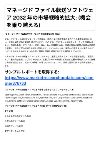 4. 投資機会: レポ トは、成⻑の可能性や競争環境など、マネ ジドファイル転送ソフトウェア市 場における投資機会に関する情報を提供します。