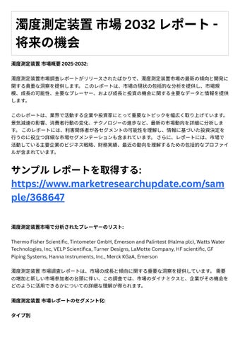 濁度測定装置市場概要 2025-2032: