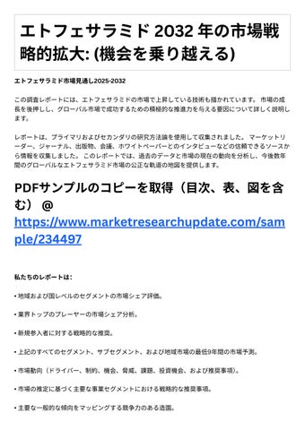 最終的に、このレポ トは、他の調査レポ トやデ タソ スを参照することなく、市場のあらゆる 事実を明確に表⽰します。私たちのレポ トは、当該市場の過去、現在、未来に関するすべての事 実を提供します。
