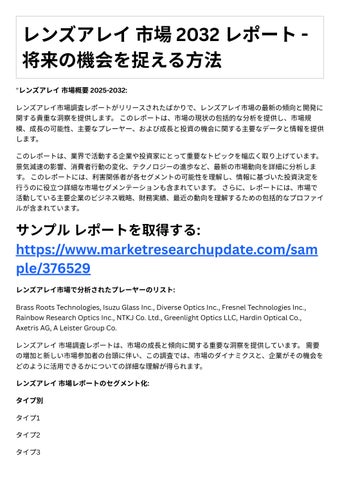 4. 投資機会: レポ トは、成⻑の可能性や競争環境など、レンズアレイ市場における投資機会に関す る情報を提供します。