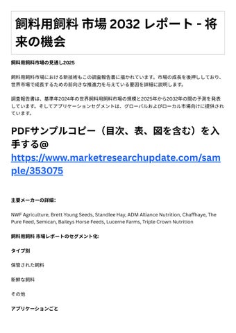 新たな主要セグメントと地域 主要マ ケットプレ ヤ による主要事業戦略とその主要⼿法 調査レポートは、グローバルおよび地域レベルでの飼料⽤飼料市場の規模、シェア、傾向、 および成⻑分析を網羅しています。