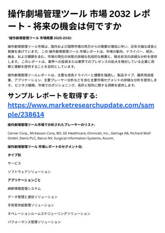 完全なレポートの説明、⽬次、図表、図表などを ⼊⼿する @ https://www.marketresearchupdate.com/indu stry-growth/operating-theatre-managementtools-market-2022-238614