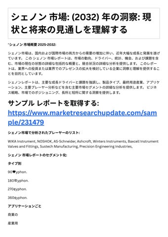 4. 投資機会: レポートは、成⻑の可能性や競争環境など、シェノン市場における投資機会に関する情 報を提供します。
