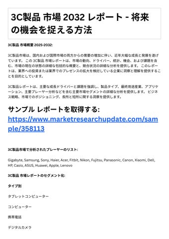 4. 投資機会: レポ トは、成⻑の可能性や競争環境など、3C製品市場における投資機会に関する情 報を提供します。