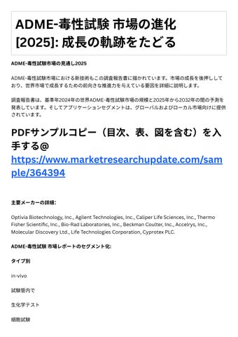 調査報告書は、基準年2024年の世界ADME-毒性試験市場の規模と2025年から2032年の間の予測を 発表しています。そしてアプリケーションセグメントは、グローバルおよびローカル市場向けに提供 されています。