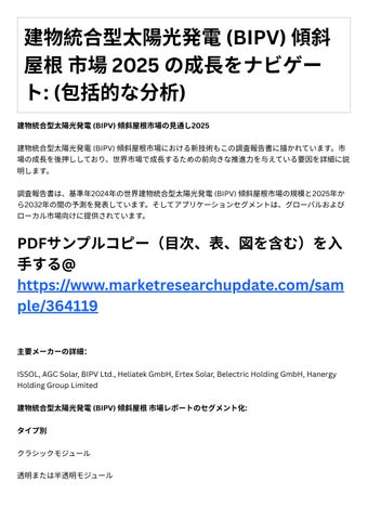 主要マーケットプレーヤーによる主要事業戦略とその主要⼿法 調査レポ トは、グロ バルおよび地域レベルでの建物統合型太陽光発電 (BIPV) 傾斜屋根市 場の規模、シェア、傾向、および成⻑分析を網羅しています。