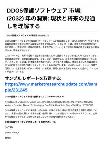 1. 市場の洞察: このレポートは、市場規模、成⻑率、セグメンテーション、競争環境など、DDOS保 護ソフトウェア市場に関する貴重な洞察を提供します。