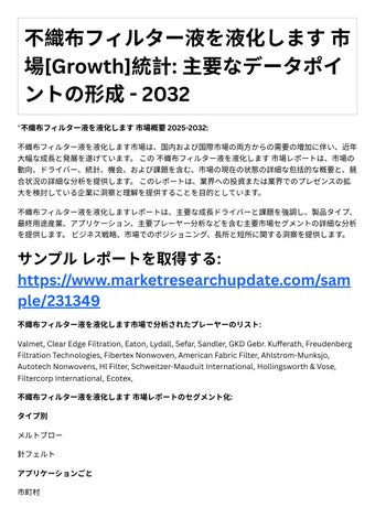 不織布フィルター液を液化しますマーケットレポ ートの割引を確認してください @ https://www.marketresearchupdate.com/disc ount/231349
