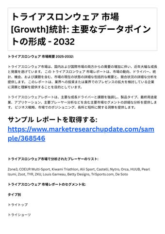 1. 市場の洞察: このレポ トは、市場規模、成⻑率、セグメンテ ション、競争環境など、トライア スロンウェア市場に関する貴重な洞察を提供します。