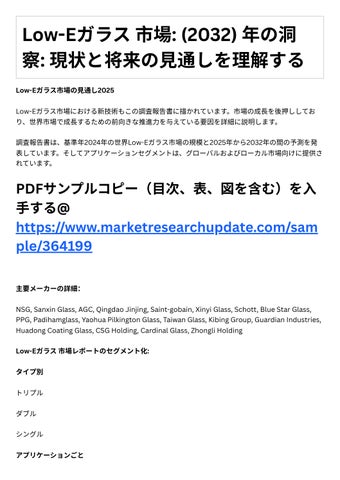 新たな主要セグメントと地域 主要マ ケットプレ ヤ による主要事業戦略とその主要⼿法 調査レポートは、グローバルおよび地域レベルでのLow-Eガラス市場の規模、シェア、傾 向、および成⻑分析を網羅しています。