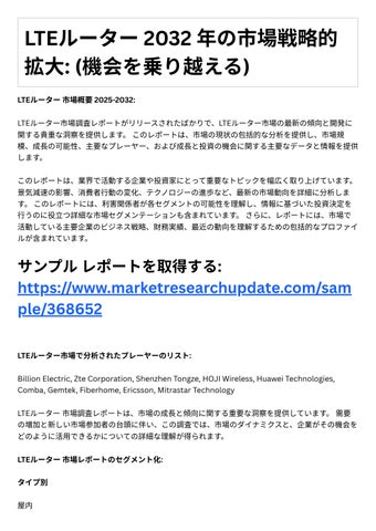 4. 投資機会: レポ トは、成⻑の可能性や競争環境など、LTEル タ 市場における投資機会に関す る情報を提供します。
