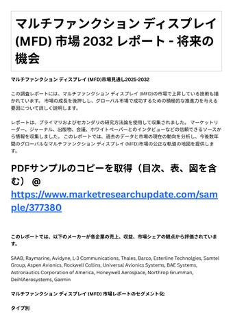 この調査レポ トには、マルチファンクションディスプレイ (MFD)の市場で上昇している技術も描 かれています。市場の成⻑を後押しし、グロ バル市場で成功するための積極的な推進⼒を与える 要因について詳しく説明します。