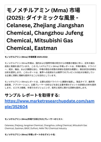 4. 投資機会: レポ トは、成⻑の可能性や競争環境など、モノメチルアミン (Mma) 市場における投 資機会に関する情報を提供します。