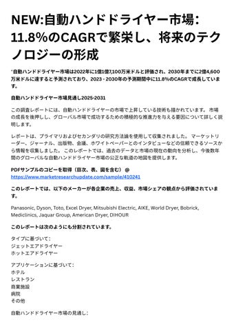 この調査レポ トには、⾃動ハンドドライヤ の市場で上昇している技術も描かれています。市場 の成⻑を後押しし、グローバル市場で成功するための積極的な推進⼒を与える要因について詳しく説 明します。