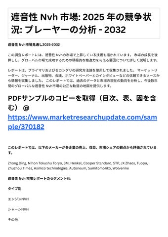 PDFサンプルのコピーを取得(⽬次、表、図を含 む) @ https://www.marketresearchupdate.com/sam ple/370182