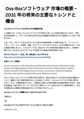 新たな主要セグメントと地域 主要マーケットプレーヤーによる主要事業戦略とその主要手法 調査レポートは、グローバルおよび地域レベルでのOss-Bssソフトウェア市場の規模、シェア、 傾向、および成長分析を網羅しています。