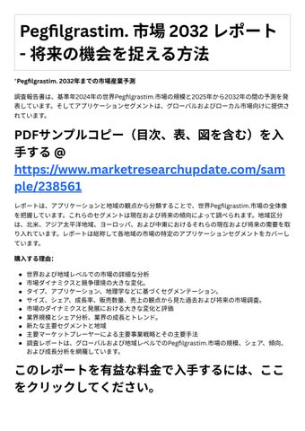 4. 投資機会: レポートは、成⻑の可能性や競争環境など、Pegfilgrastim. 市場における投資機会に関 する情報を提供します。