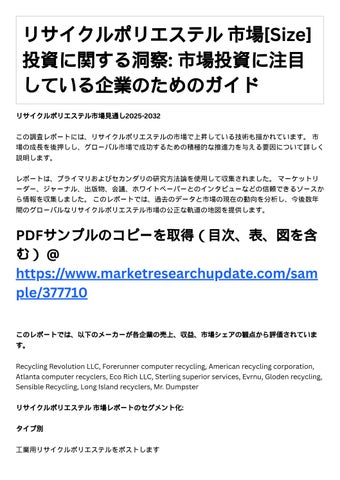 このレポートは、市場の重要な要素と、ドライバー、抑制、過去と現在の現在の傾向、監督シナリ オ、技術的成長などの要素の包括的な概要を提供します。 これらの要素の徹底的な分析は、グロー バルリサイクルポリエステル市場の将来の成長見通しを定義するために受け入れられています。