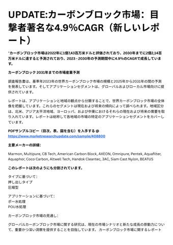 新たな主要セグメントと地域 主要マ ケットプレ ヤ による主要事業戦略とその主要⼿法 調査レポ トは、グロ バルおよび地域レベルでのカ ボンブロック市場の規模、シェア、傾 向、および成⻑分析を網羅しています。