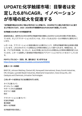 化学触媒 2031年までの市場産業予測