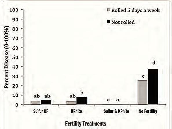 Research from Oregon State University shows significant Microdochium suppression by Sulphur, Phosphite (KPhite) and rolling, with full control by combination of all three.